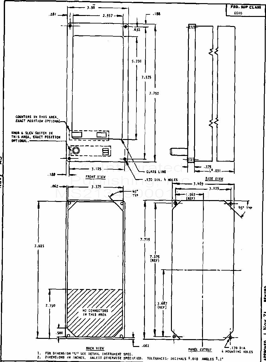 MS21349 Case, Instruments, Vertical Scale, Standard Dimensions For