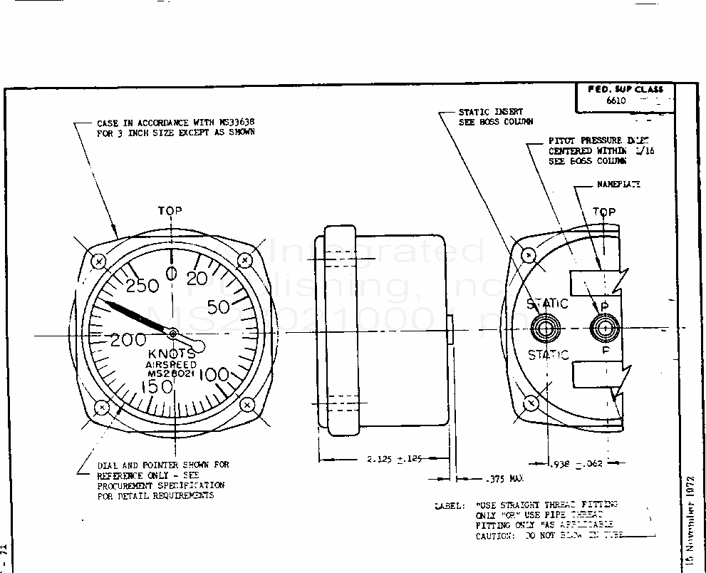 MS28021 Indicator - Indicated Air Speed, Pitot Static, 20-250 Knots