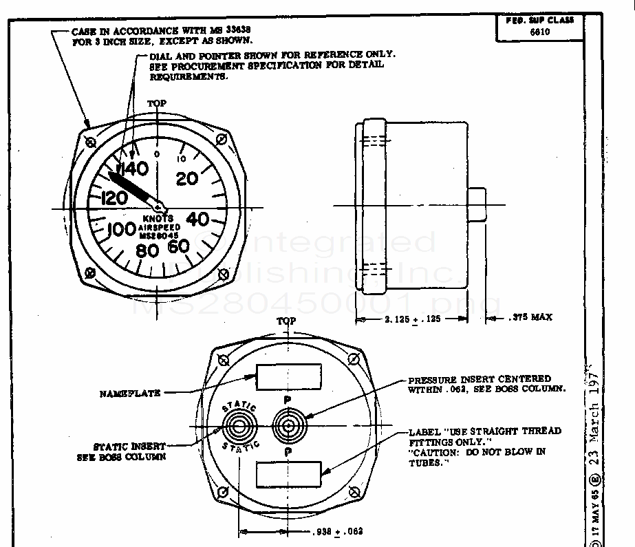 MS28045 Indicator, Indicated Airspeed Pitot Static, 10-150 Knots