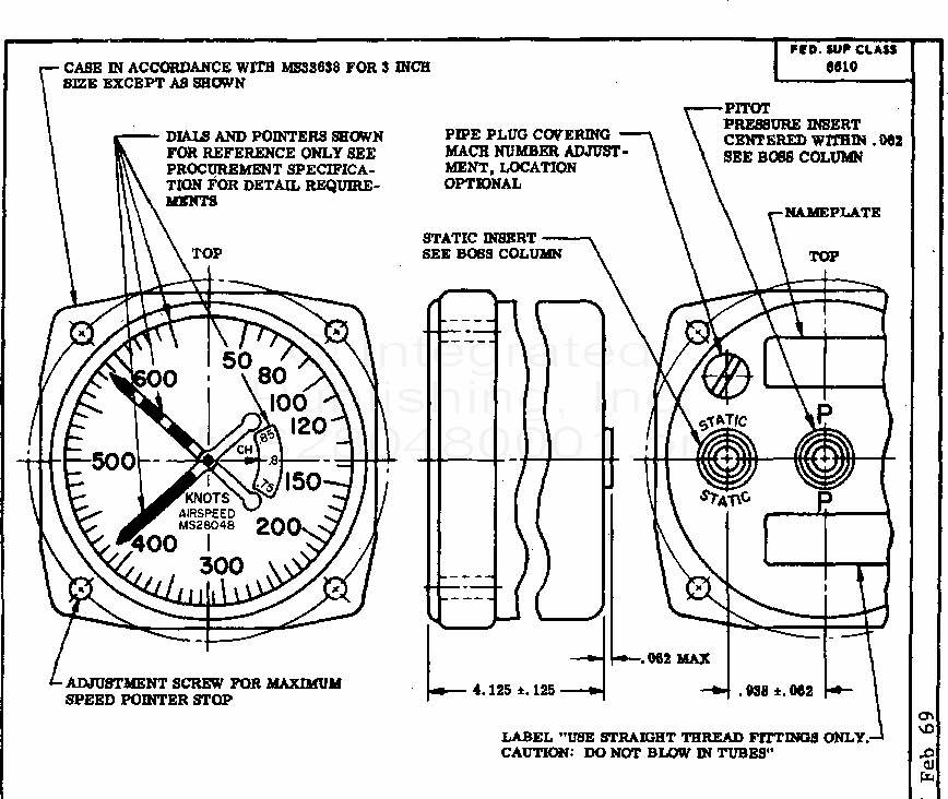 MS28048 Indicator, Indicated Airspeed, Pitot Static Maximum Allowable Speed, 50-650 Knots (Asg)