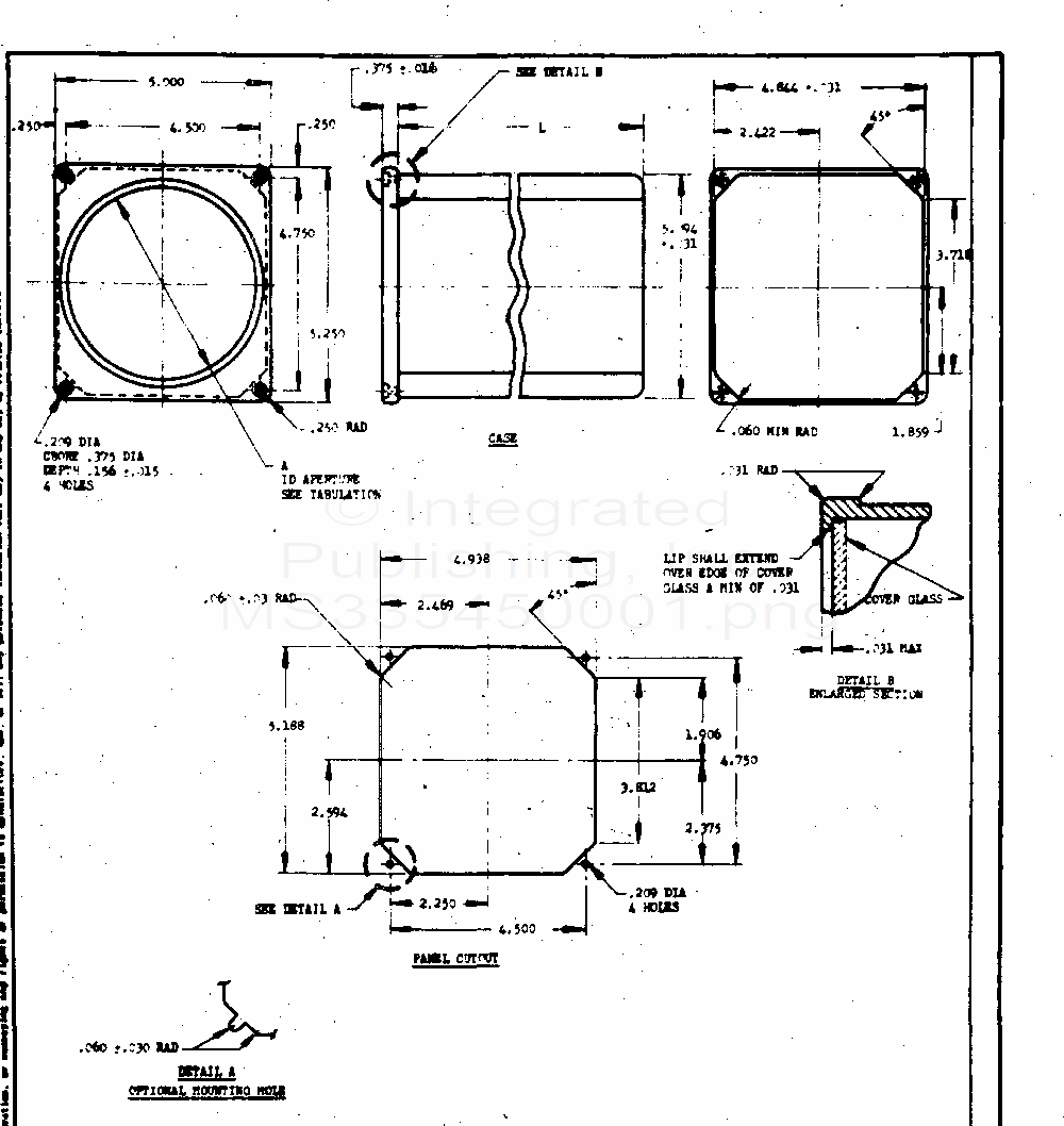 MS33545 Case Instrument, 5 X 5-1/4, Standard Dimensions For